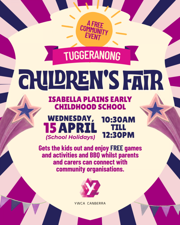 Home News Tuggeranong Children's Fair Tuggeranong Children's Fair 2 March 2026 A FREE school holiday event for Tuggeranong families. Click here to read more.