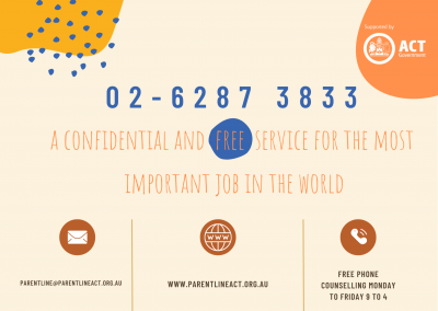 Parentline ACT provides free and confidential telephone counselling and referrals to parents and carers. It uses a humanist and client/child centered approach to counselling; and it focusses on building relationships based on listening to your child, and problem solving and assertiveness skills.