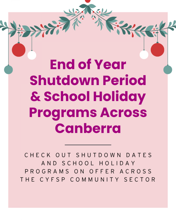 Many local community organisations make up the ACT Child, Youth Family Services Program (known as CYFSP). You can view a full list here.
