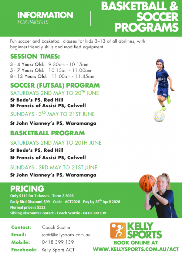 Are you looking for sports for your child that won't brake the bank? Check out the offer below from Kelly Sports- just $90 for 7 weeks - that's just $12 a class. And there is special consideration for families on lower incomes- up to 50% off for eligible families. To register or if you have any questions please reach out to Scottie on 0418 399 139 or email [email protected]